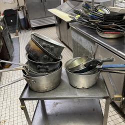 • Assorted metal trays, pots, pans & cookware